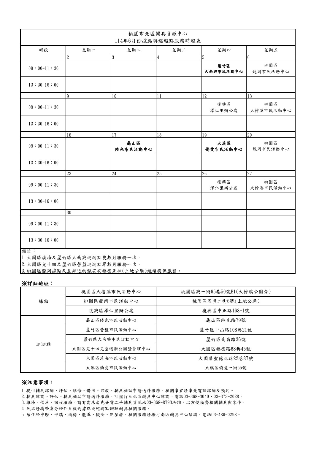 5.居住於中壢、平鎮、楊梅、龍潭、觀音、新屋者,相關服務請撥打南區輔具中心諮詢,電話03-489-0298。